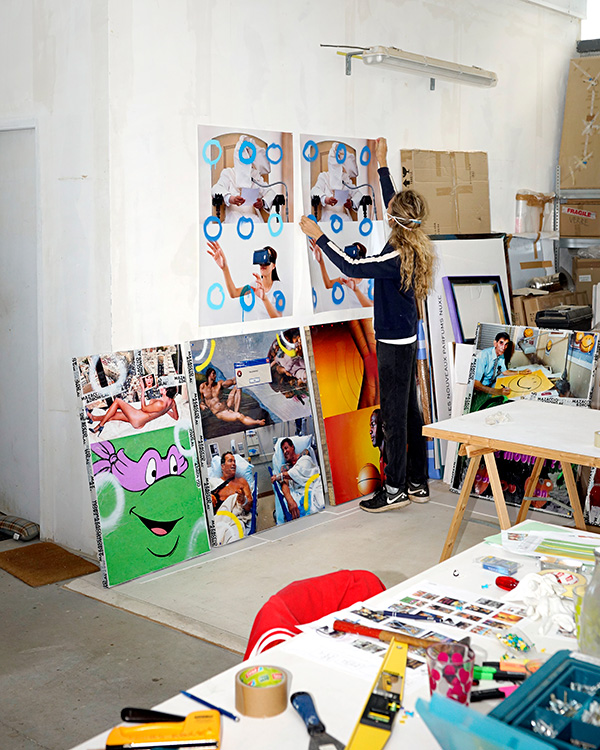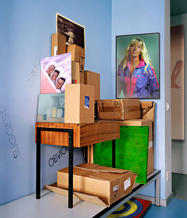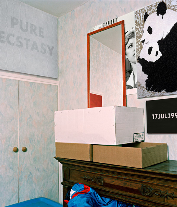 Tirages chromogènes (C-Prints), peinture aérosol, porte isoplane, agrafes, punaises, adhésif siglé, emballage plastique