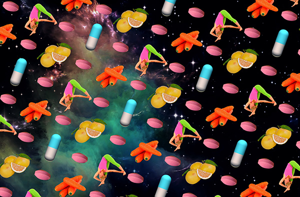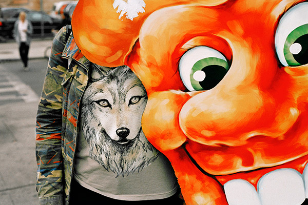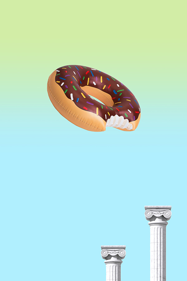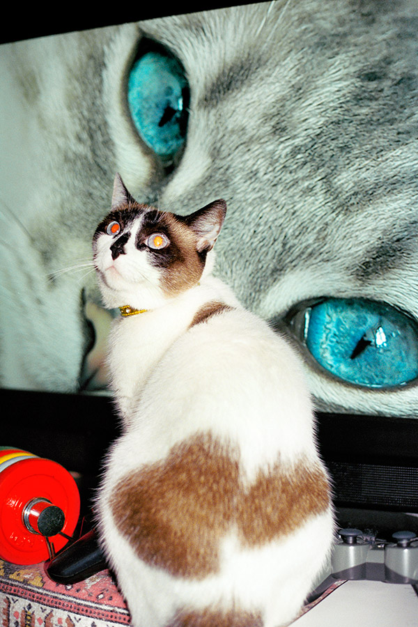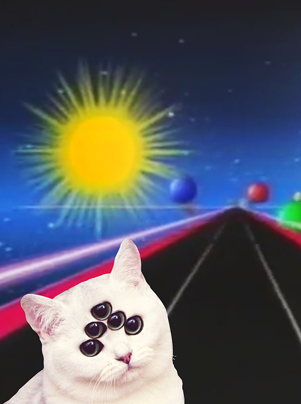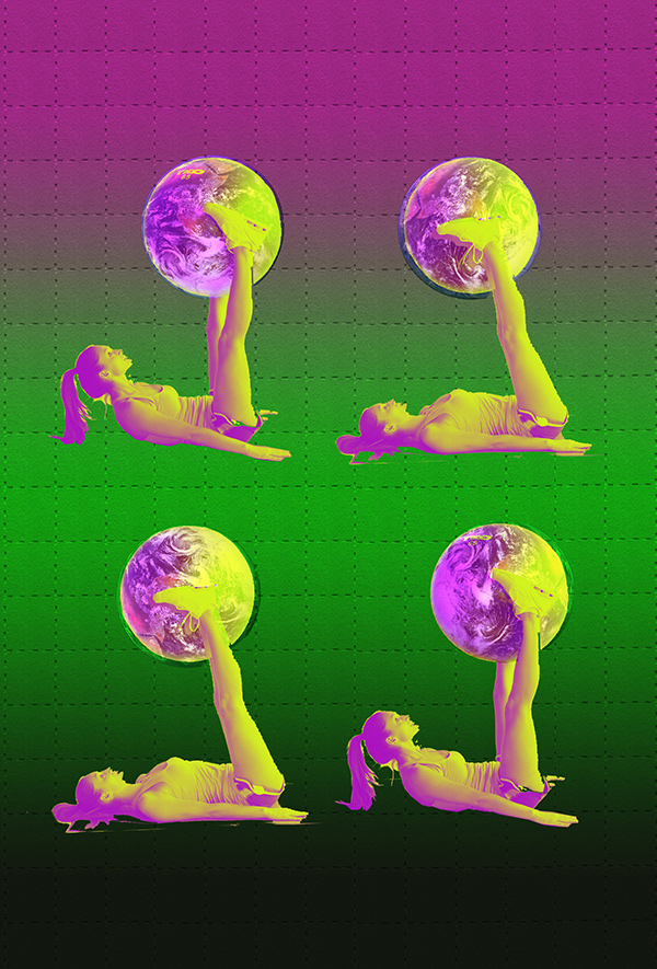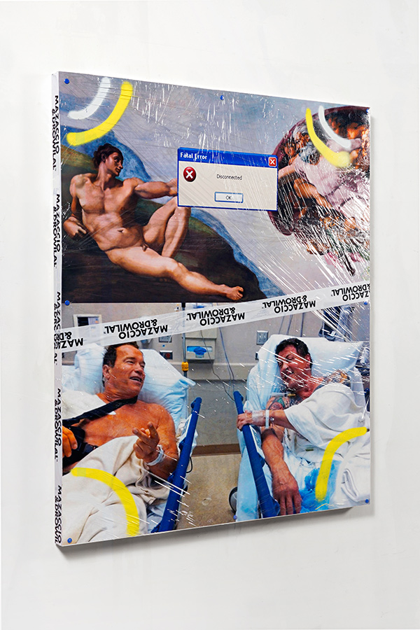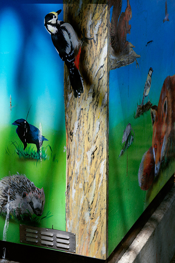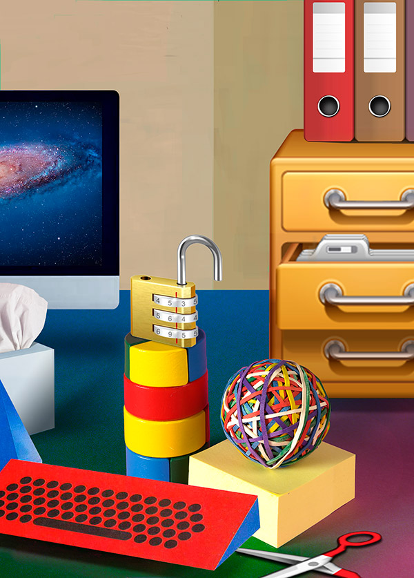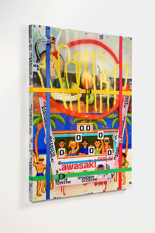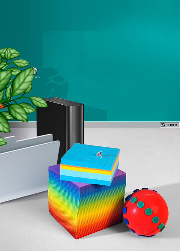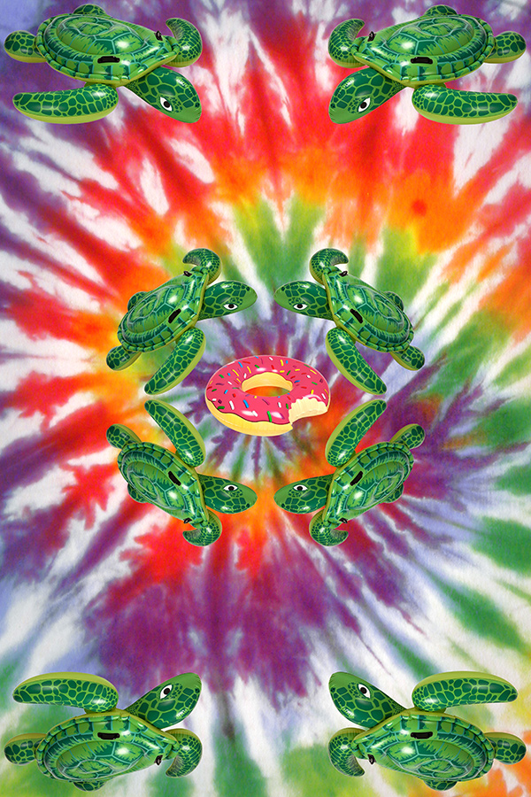 giclee prints, photos-reliefs, shelves, hamster cages, gym ball,, emojis
