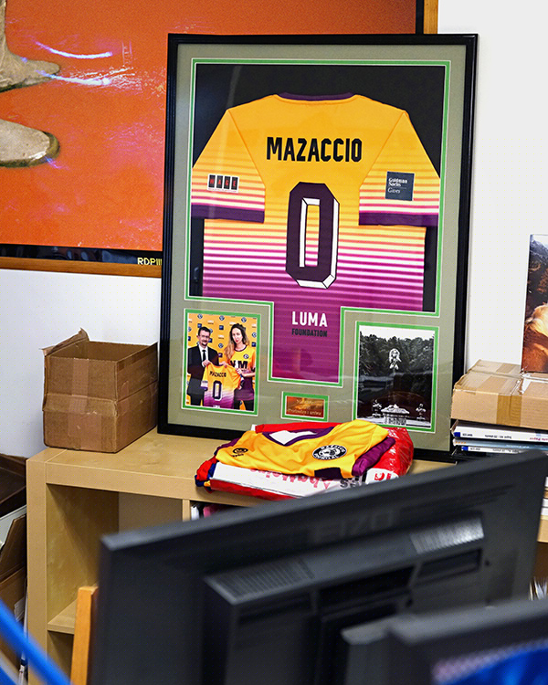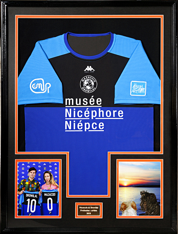 Jerseys (sublimation print, flocking, embroidery), 2 giclee prints, engraved plate, display case